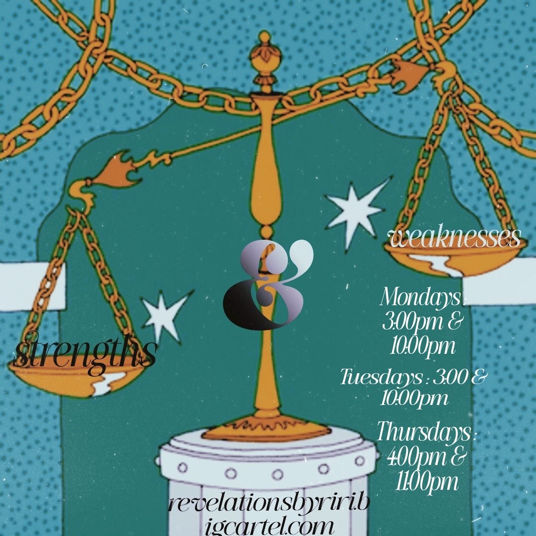 Find out where your strengths lie, in your personality, career, love life, etc. (Ex: Where do my strengths lie in my love life?) For my witchlings and apprentices out there, find out where your strengths and weaknesses are in your magical or psychic abilities! 45 mins to an hour.